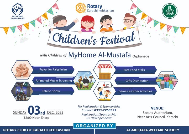 On this Children’s Day, Al-Mustafa Welfare Society & Rotary Club of Karachi Kehkashan invite you and your family in celebrating children with some very special guests of MyHome Al-Mustafa (orphanage).